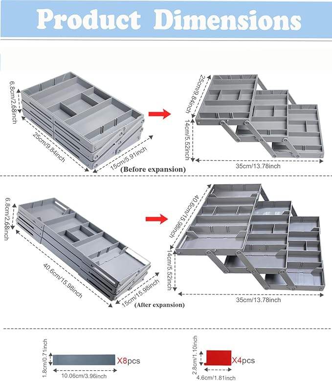 3 Tier Drawer Organizer Expandable Junk Drawer Organizer Multi Level Folding Smart Drawer Organizer for Makeup