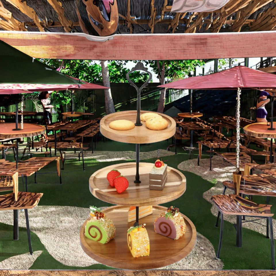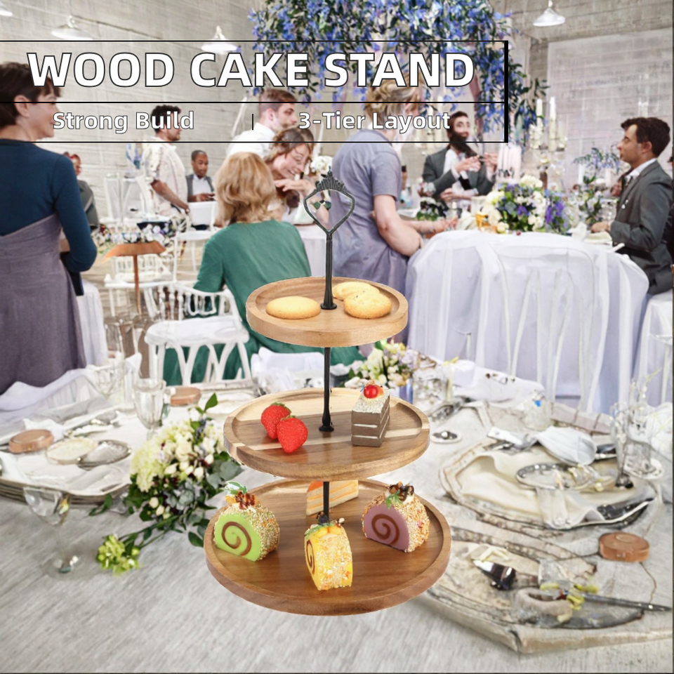 3 Tier Eco-Friendly Acacia Wood Cake Stand & Serving Tray Farmhouse Tiered Cupcake Holder for Wedding Tea Party