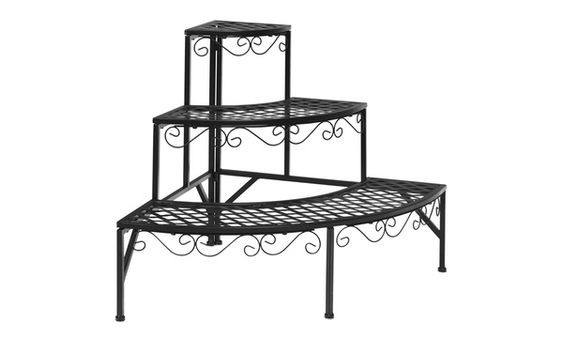 3-Tier Indoor Galvanized Iron Plant Stand Black Steel Pot Planter with Flower Pots & Planters
