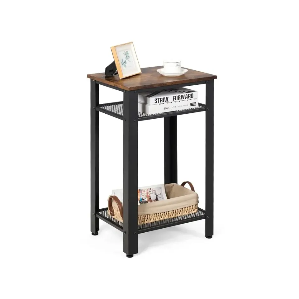 3-Tier Industrial Tall Console Table with Mesh Shelves Wood Contemporary Design for Apartment Use
