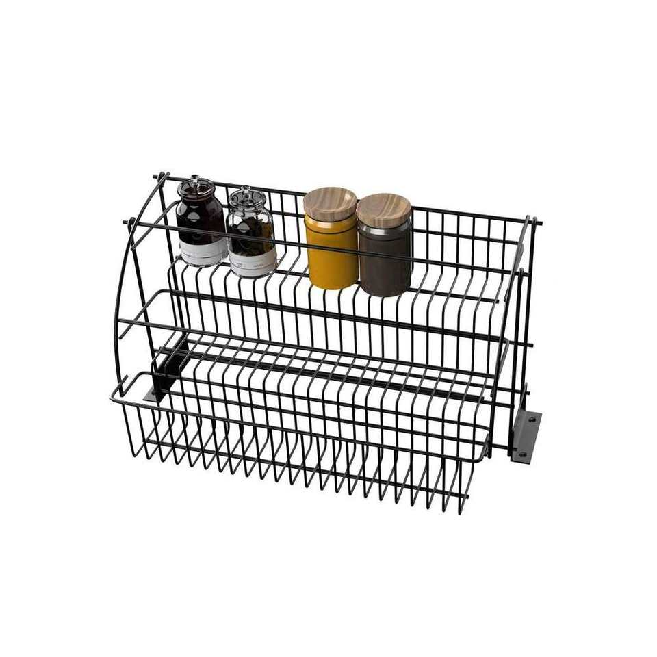 3-Tier Kitchen Folding Rack Black Iron and Carbon Steel Shelf for Convenient Storage of Spices Snacks Cosmetics
