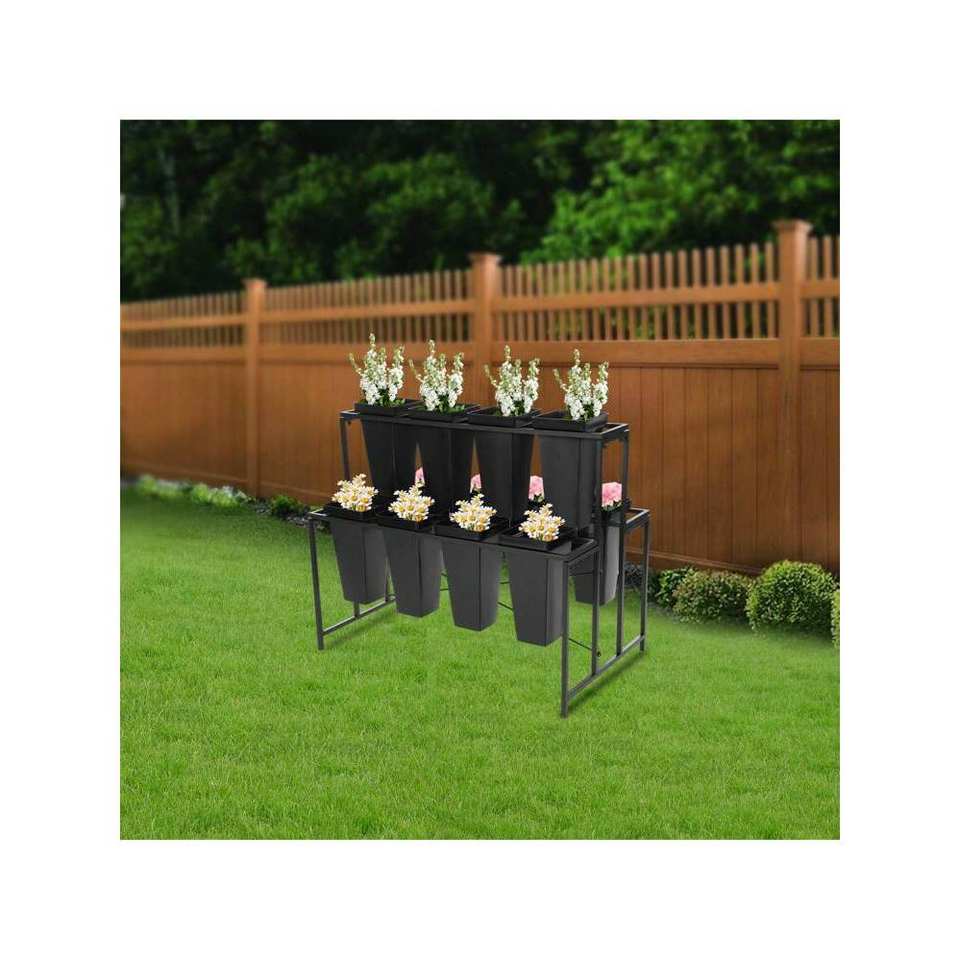 3-Tier Metal Flower Display Stand with Buckets Iron Plant Stand for Flower Exhibitions