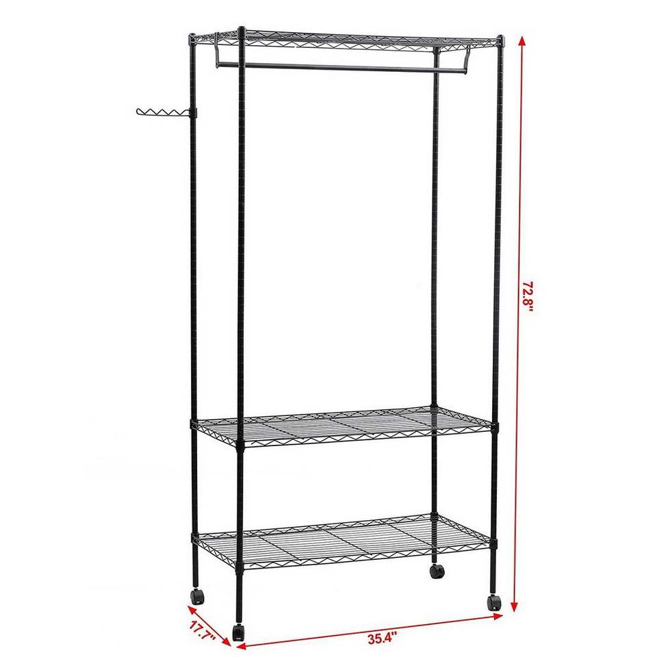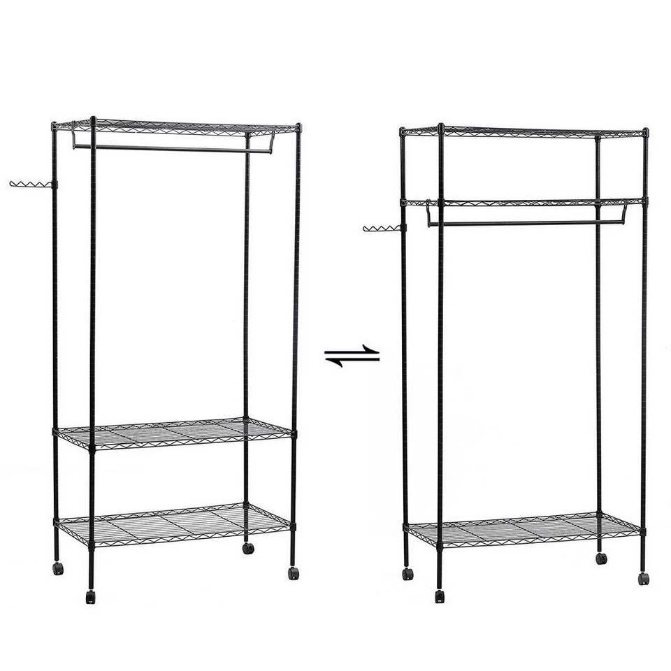 3-Tier Metal Garment Rack Portable Home Closet Organizer with Hanging Shelves RT Clothes Organiser