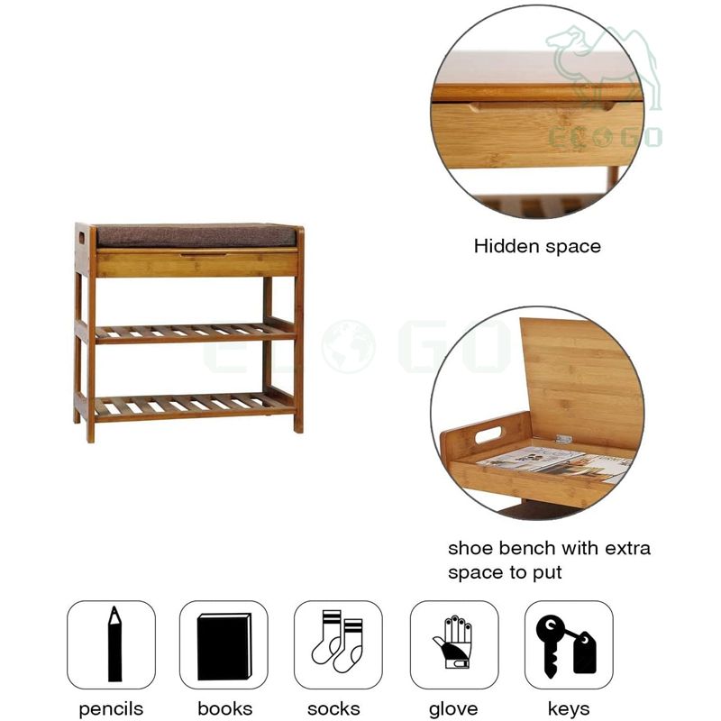 3 Tier Natural Bamboo Shoe Rack Bench Luxurious Shoes Storage Organizer Good Quality Shoe Racks & Stands for Hallway Corridor