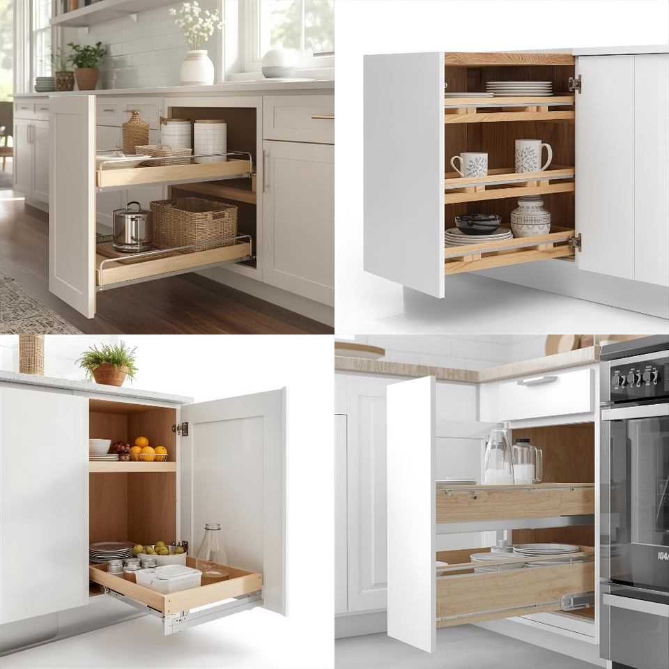 3 Tier Pull Out Cabinet Organizer Soft Close Wood Pullout Shelf Slide Out Spice Rack for Kitchen Base Cabinets Organizer