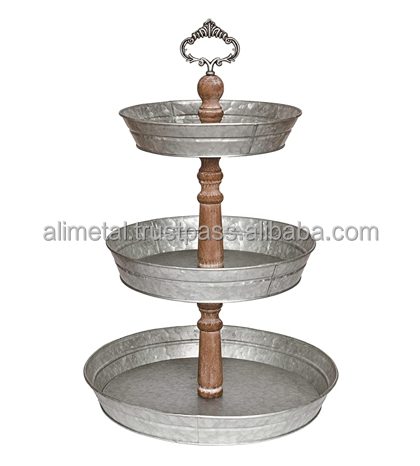 Modern Home Decor 3-Tier Round Cup Cake Stand Rustic Galvanized Metal with Customizable Features