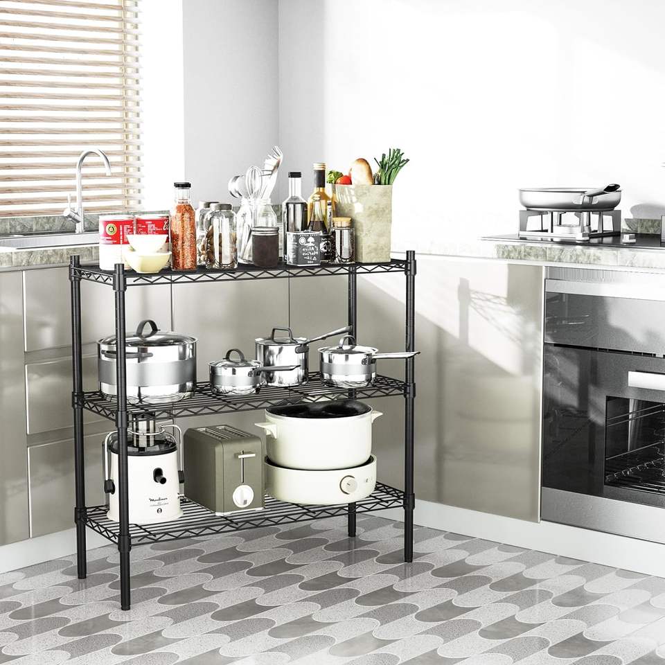 SIMPLY Heavy-Duty 3-Tier Adjustable Metal Grid Shelving Unit Vertical Storage Rack Garage Kitchen Welded Aluminum Wire Mesh Low