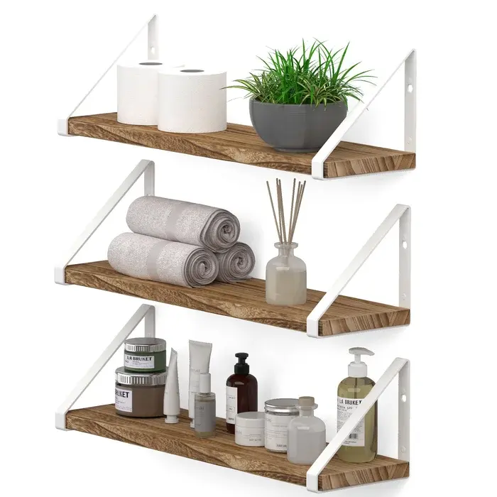 3-Tier White Wood Black Metal Frame Wall Mounted Floating Shelves, Set of 3 Durable High Quality Shelves/Shelf in High Quality