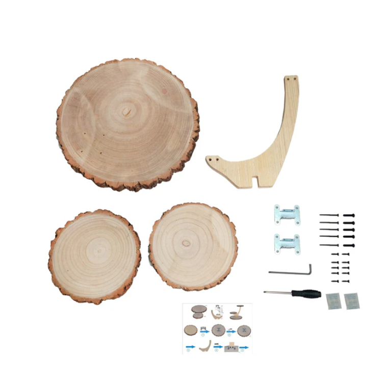 3-Tier Wooden Cheese Board Stand Tower Design Natural Wood Slice Rustic Cupcake Centerpiece with Assembly Tools