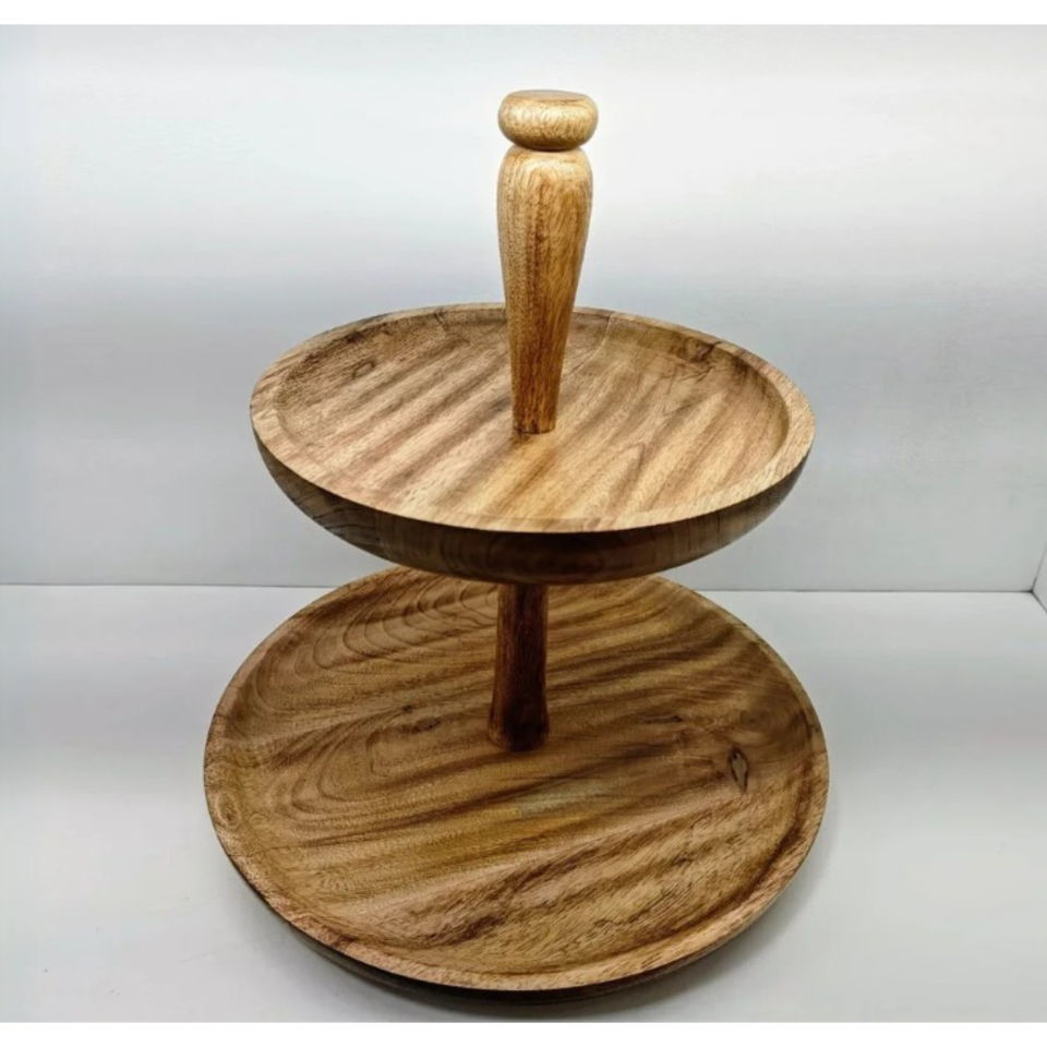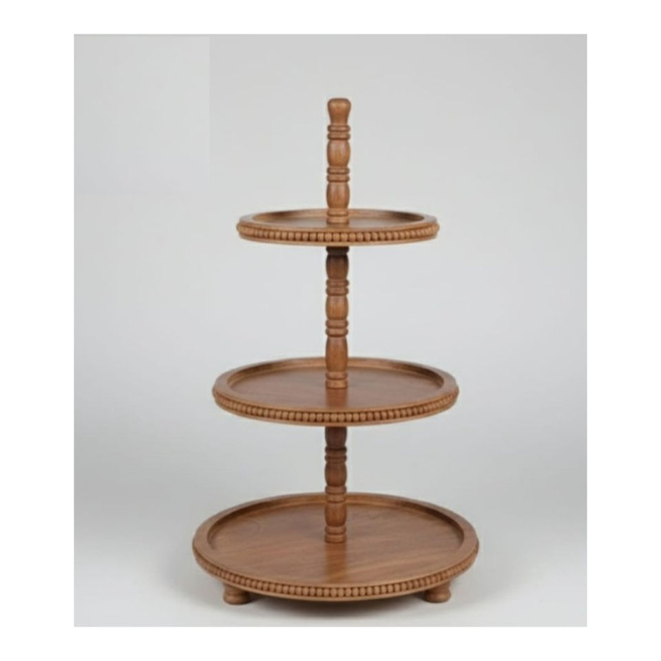 3-Tier Wooden Serving Tray Cupcake Dessert Display Stand Tiered Tray Decor For Kitchen And Home Wood Platter With Metal Handle