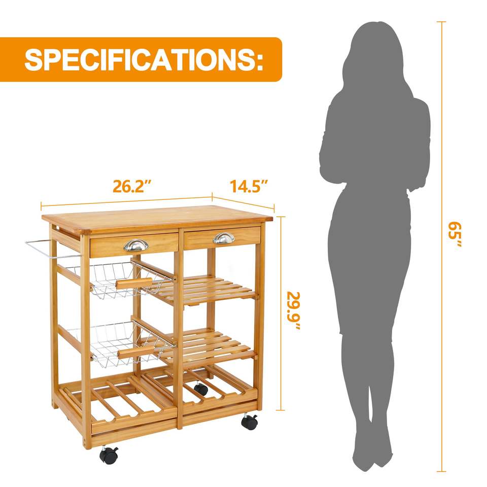 3-Tier Wooden Serving Trolley Durable Rolling Kitchen Island