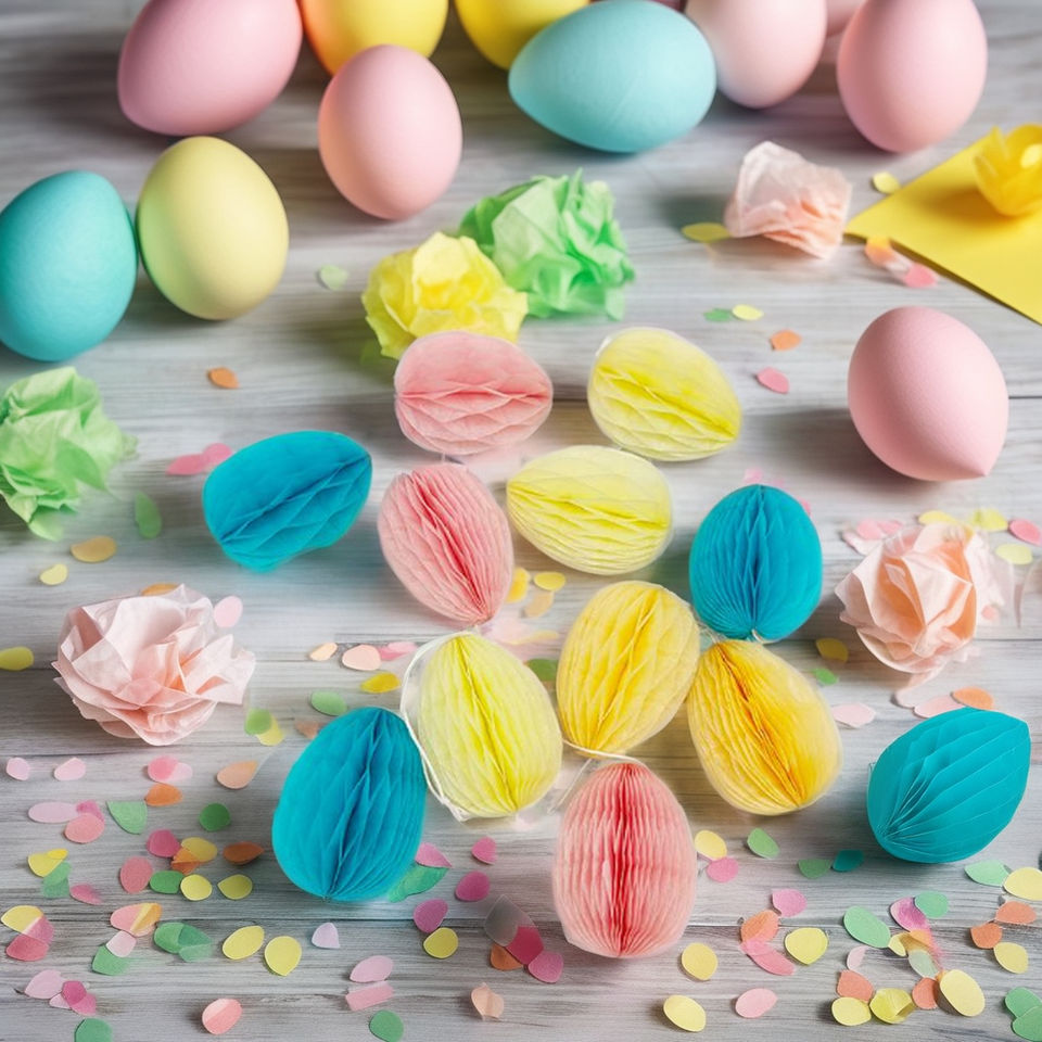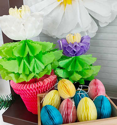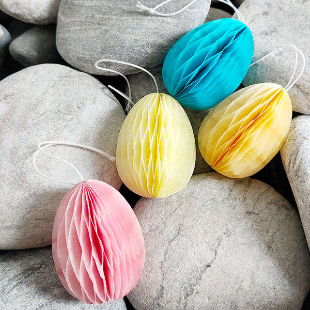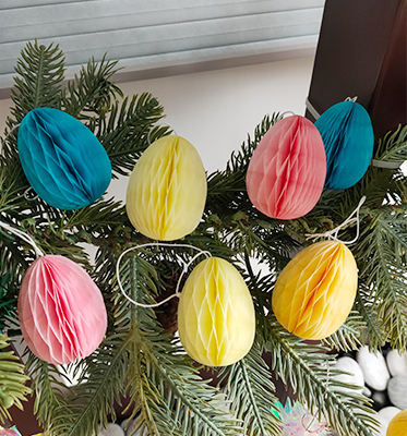 3" Tissue Paper Egg Garland Indoor Use Easter Honeycomb Decors Printed Number Shape 4-color Printed Packaging Party Decorations