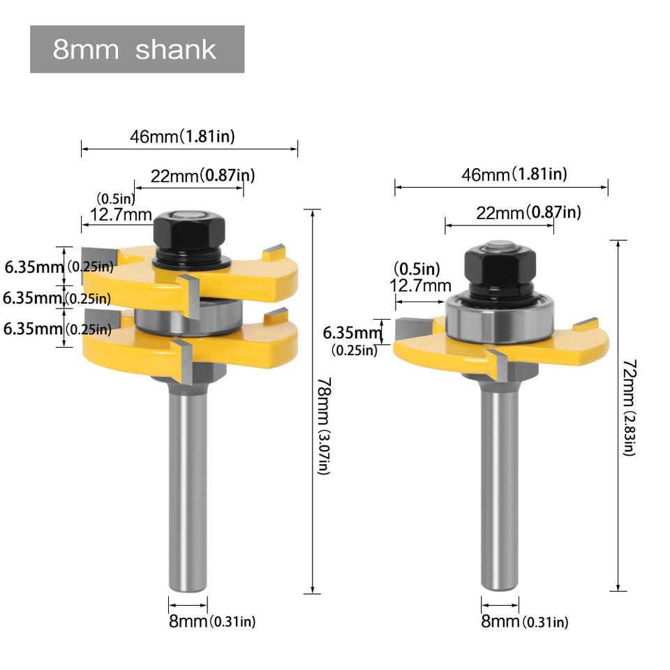 3-Tooth T-Slot Joinery Router Bit Square Tooth Flooring Panel Cutter