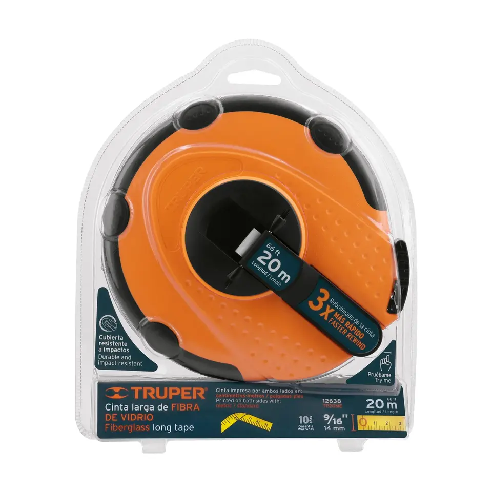 3-Unit Retractable 20m Fiberglass Long Measuring Tape PVC Laser with Imperial and Metric Systems Boxed Plastic Housing