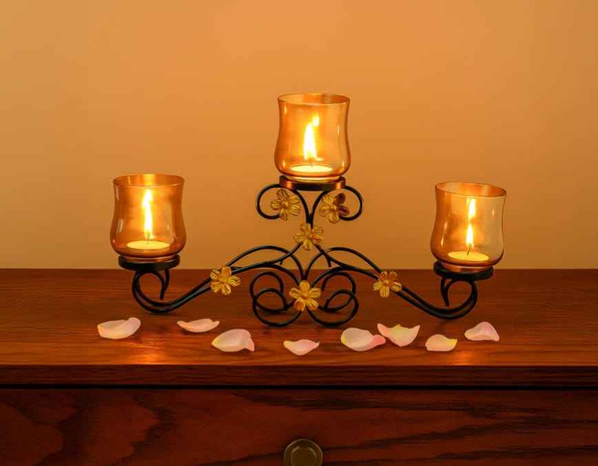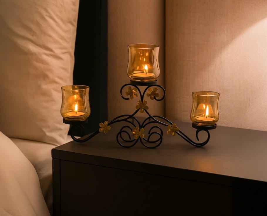 3 New Vision Handmade Heat Resistant Light Weight Black Glossy Glass Tea Light Holder