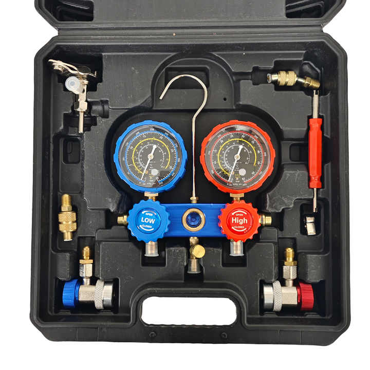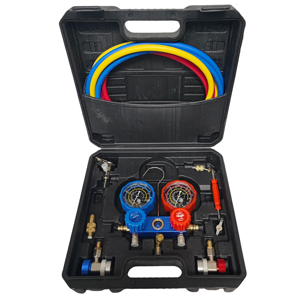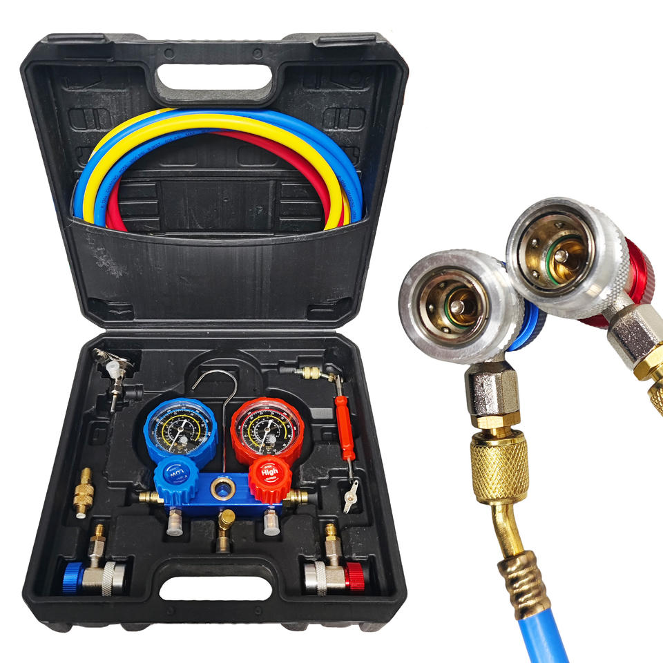 3 Way Manifold Gauge Set R134A R404A R410A R22 AC Diagnostic Pressure Gauge Kit with Ball Valve