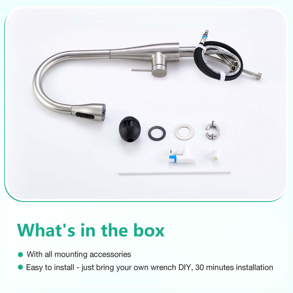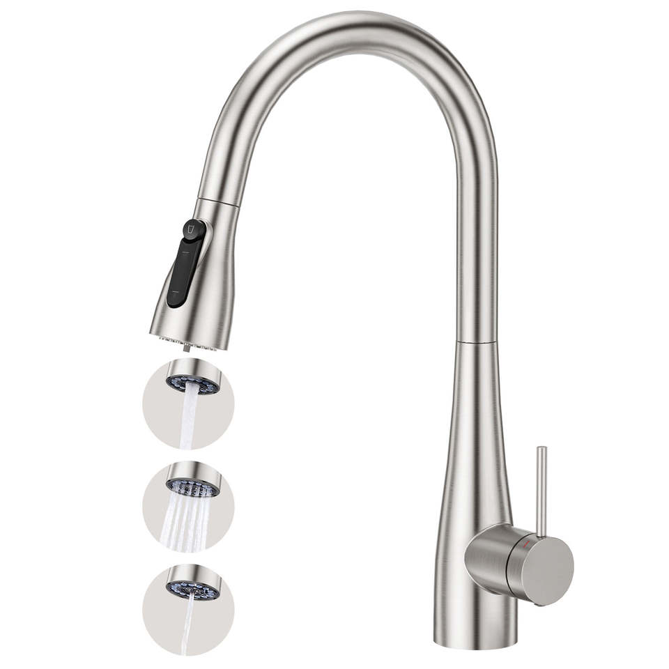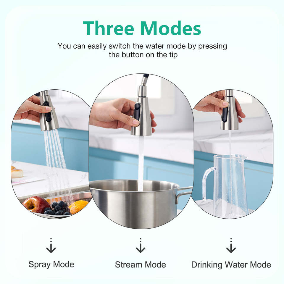 3 Way Pull Out Kitchen Faucet Stainless Steel Ceramic Valve Core Warranty 5 years