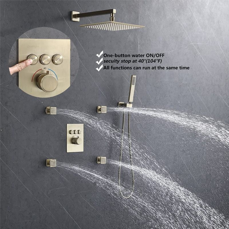 3 Way Thermostatic Brushed Gold Shower Diverter Valve Concealed Pressure Balancing Valve Shower Mixing Replacement Brass Valve