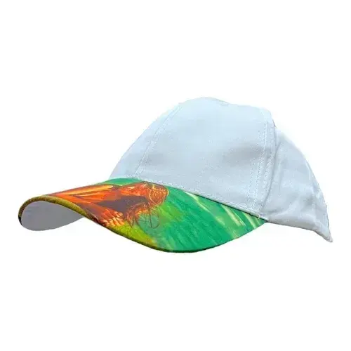 3 White Printed Camp Caps