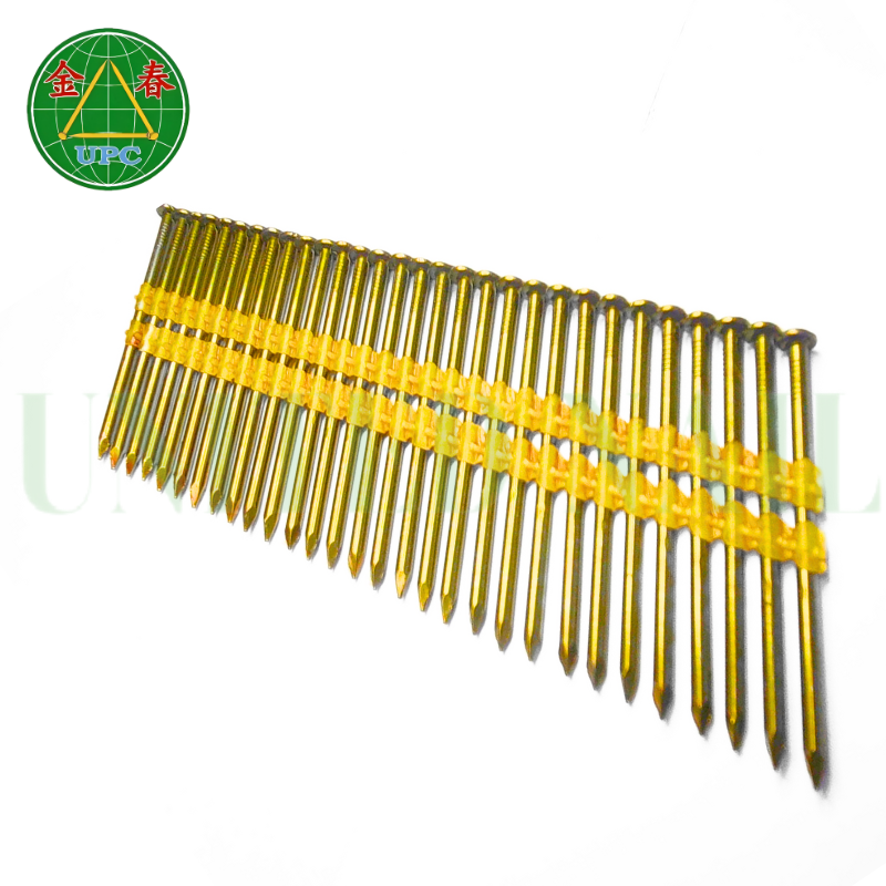 3" Yellow Coated Plastic Collated Nails with Smooth/Screw Shank & Round Head for Framing Projects with Factory Prices
