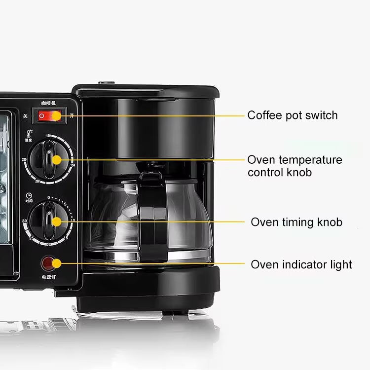 3-in-1 Breakfast Maker Home Mini Electric Oven Bread Maker,600ml Drip Coffee Machine,Non Stick Pan Fry Pan,Can Fry Grill Steak