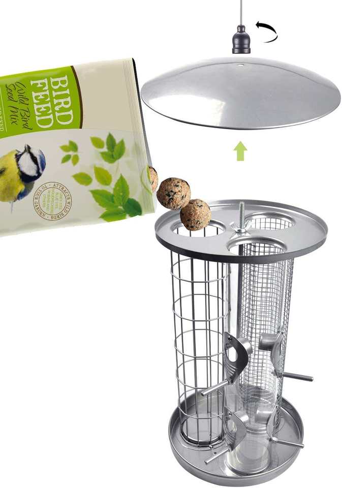 3-in-1 Durable Iron Design Outdoor Metal Hanging Automatic Eco-friendly Bird Feeder with Storage for Seeds for & Fatballs