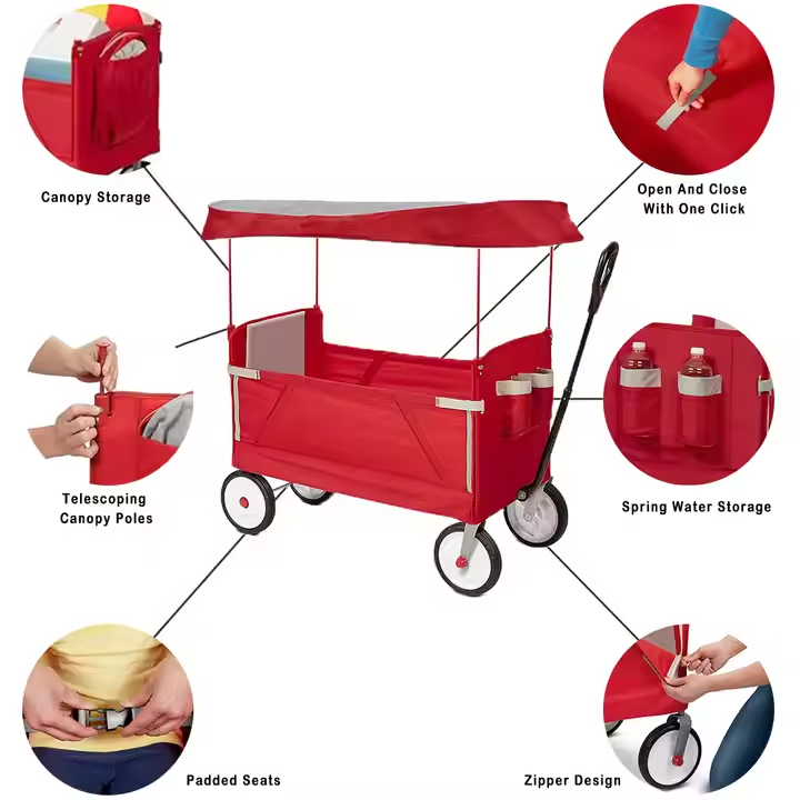3 in 1 Fold Stroller Wagon All Terrain Outdoor Collapsible Off Road Cart With Canopy and Adjustable Handle for Kids