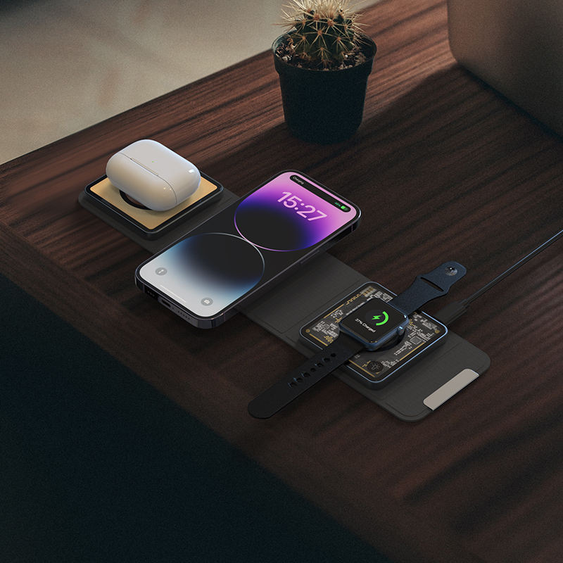 3-in-1 Foldable Magnetic Wireless Charging Station 15W Fast Charger for Phone Multifunctional Magnetic Wireless Charging Stand