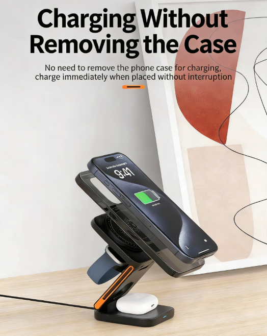 3-in-1 Foldable Magnetic Wireless Charger with 15W Fast Charging for Smart Watch & Phone Travel-Friendly
