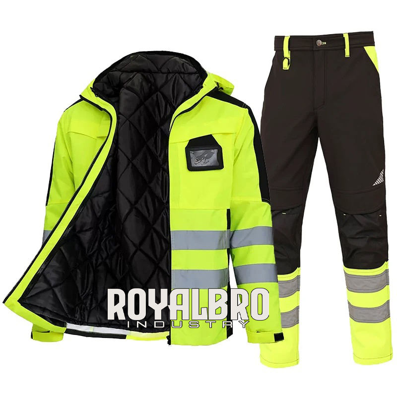 3-in-1 Hi Viz Yellow Thermal Workwear Winter Breathable Waterproof Jacket Liner Working Pants Plus Size Unisex Workwear Suits