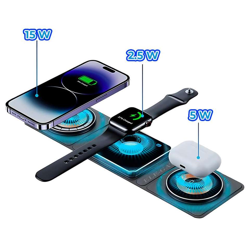 3 in 1 Portable Magnetic Foldable Wireless Charging Station for Charging Apple Watch, iPhone and Airpods