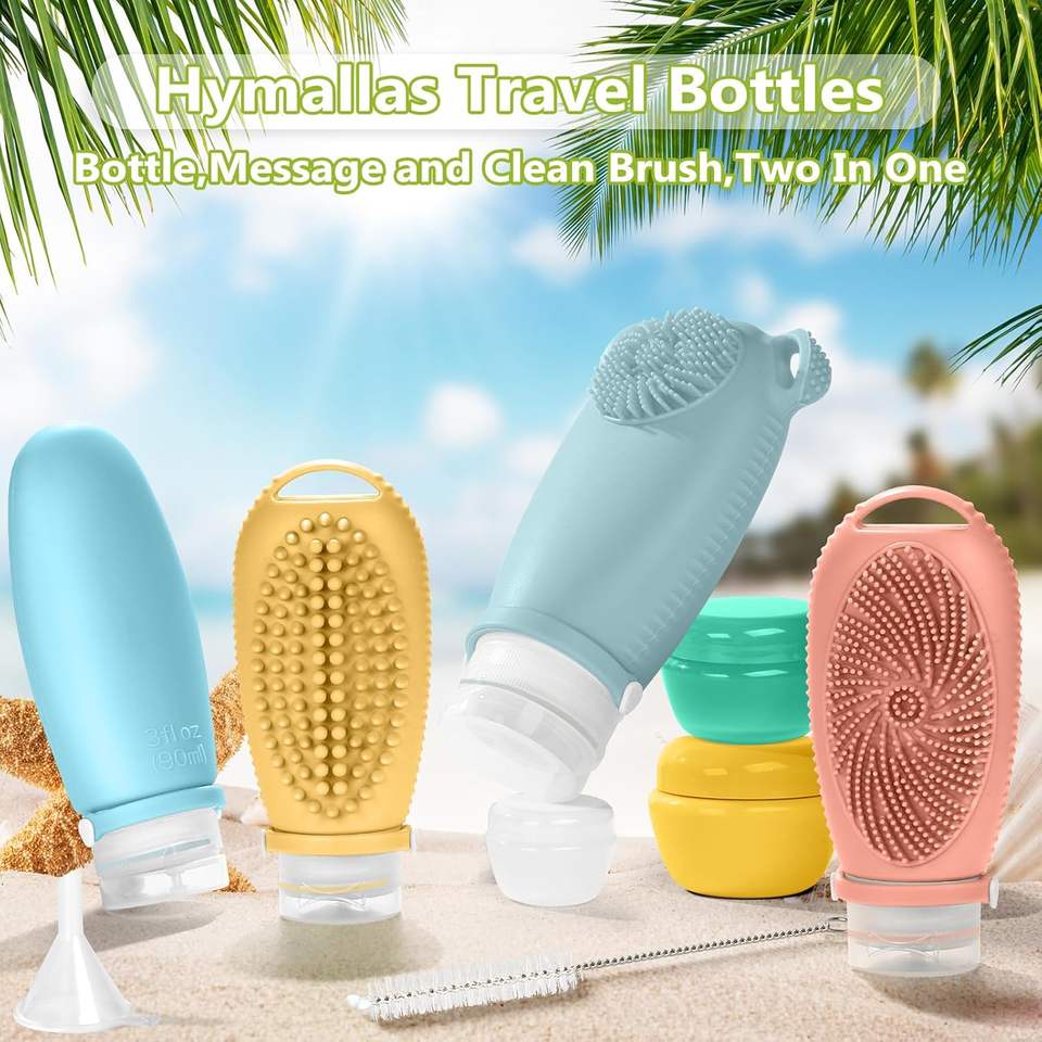 Silicone travel shampoo bottles set with message brush