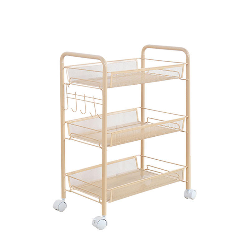 3-tier Standing Type Kitchen Cart Durable Corrosion Resistant Metal Trolley Push Cart Trolley Storage