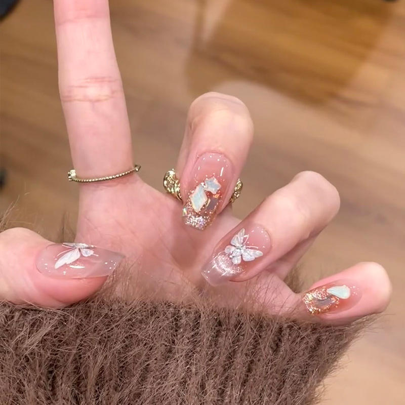 30 Butterfly Rhinestone Pieces Handmade Nail Stickers Detachable Fake Nails In Stock