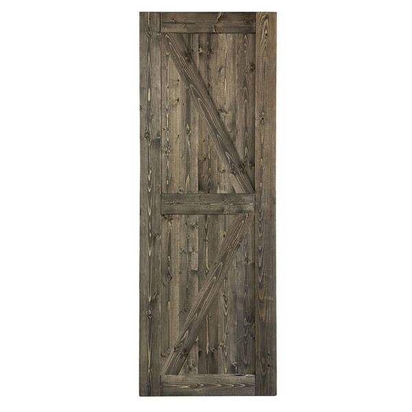 30 In. X 84 In. Solid Spruce Wood Sliding Barn Door with 5FT Hardware Kit K Frame & Gray Spray Paint 84 In. X 30 In.