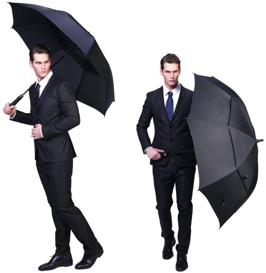 30 Inch Auto Golf Umbrella Extra Large Oversize Double Canopy Vented Windproof Fiberglass Waterproof Stick Umbrellas with Logo