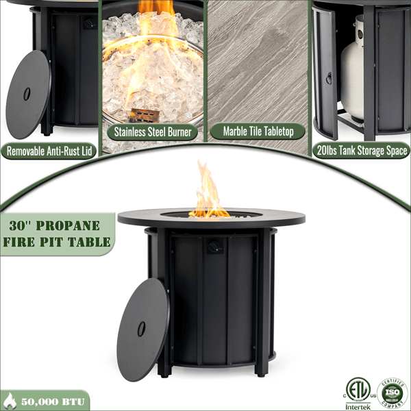 30-Inch Propane Gas Fire Pit Table 50000 BTU Steel Fire Pit Wood Grain Ceramic Patio Deck Garden B Fire Pits Product Category