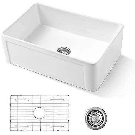 30-Inch Reversible Single Bowl Farmhouse Kitchen Sink Fireclay Fireclay Apron Front White Farm Sink