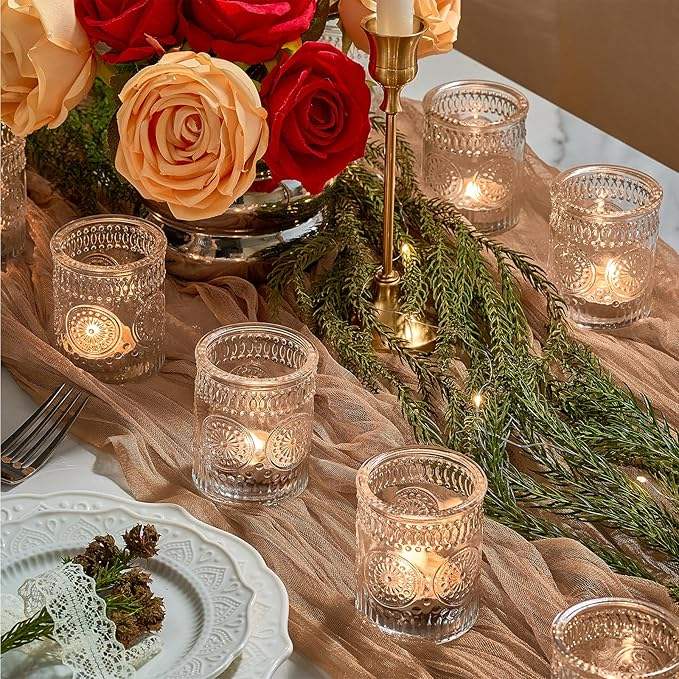 30-Piece Bulk Vintage Clear Glass Votive Candle Holders Metal for Home Bridal Shower Party Decor for Wax Tealights
