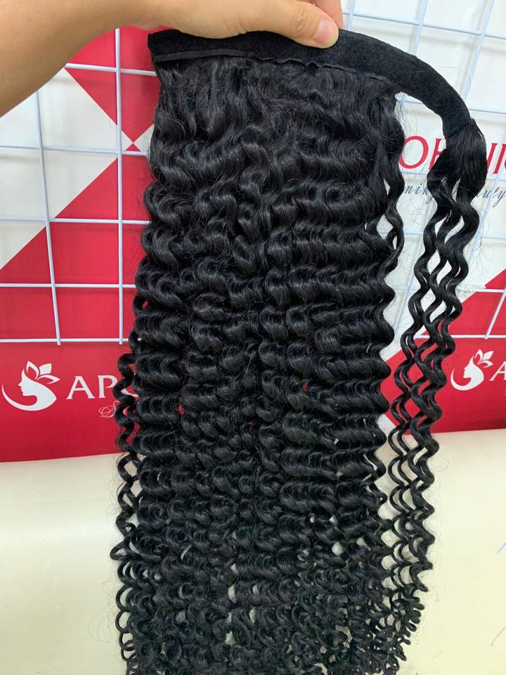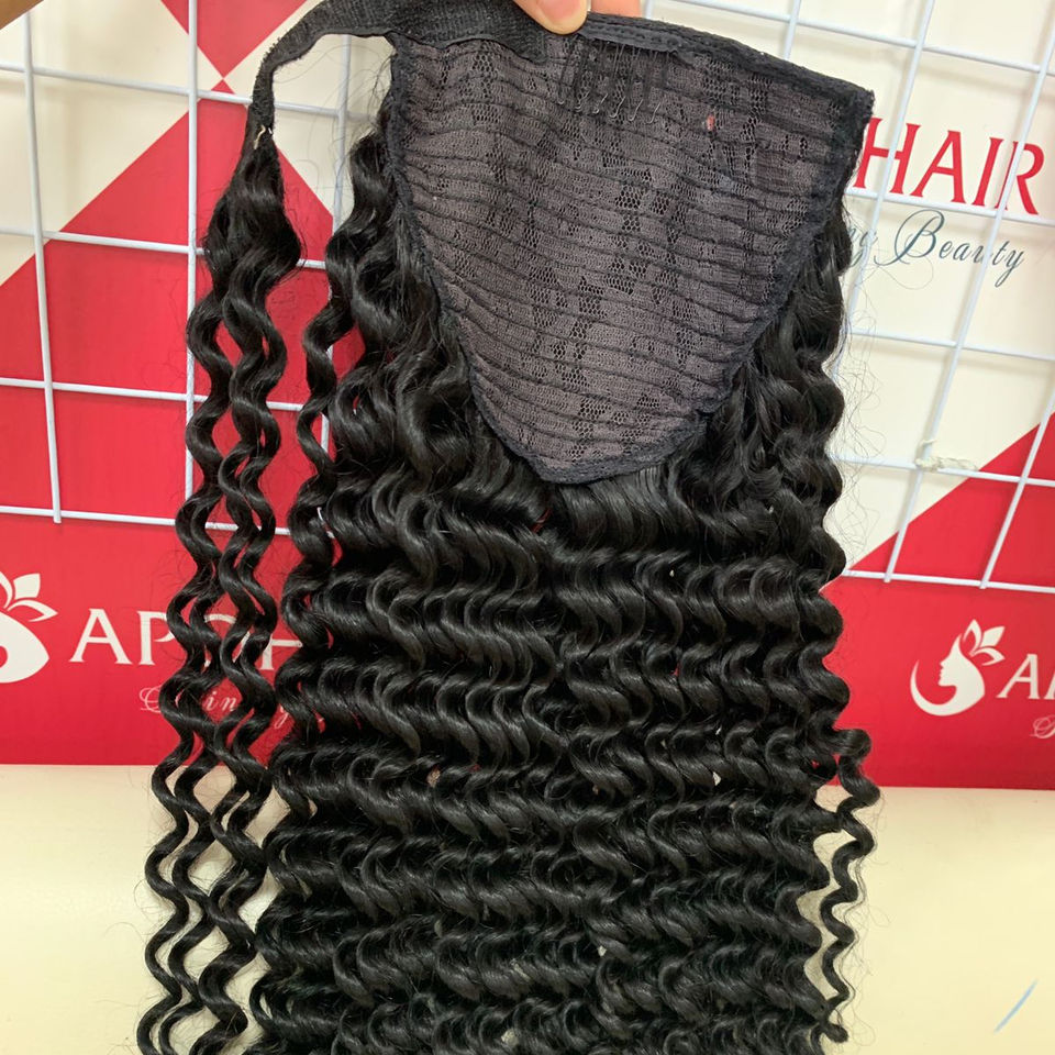 30 Inch Deep Wave Natural Curl Human Hair Pony tails Hair Extensions Natural Wrap Around Drawstring Ponytail
