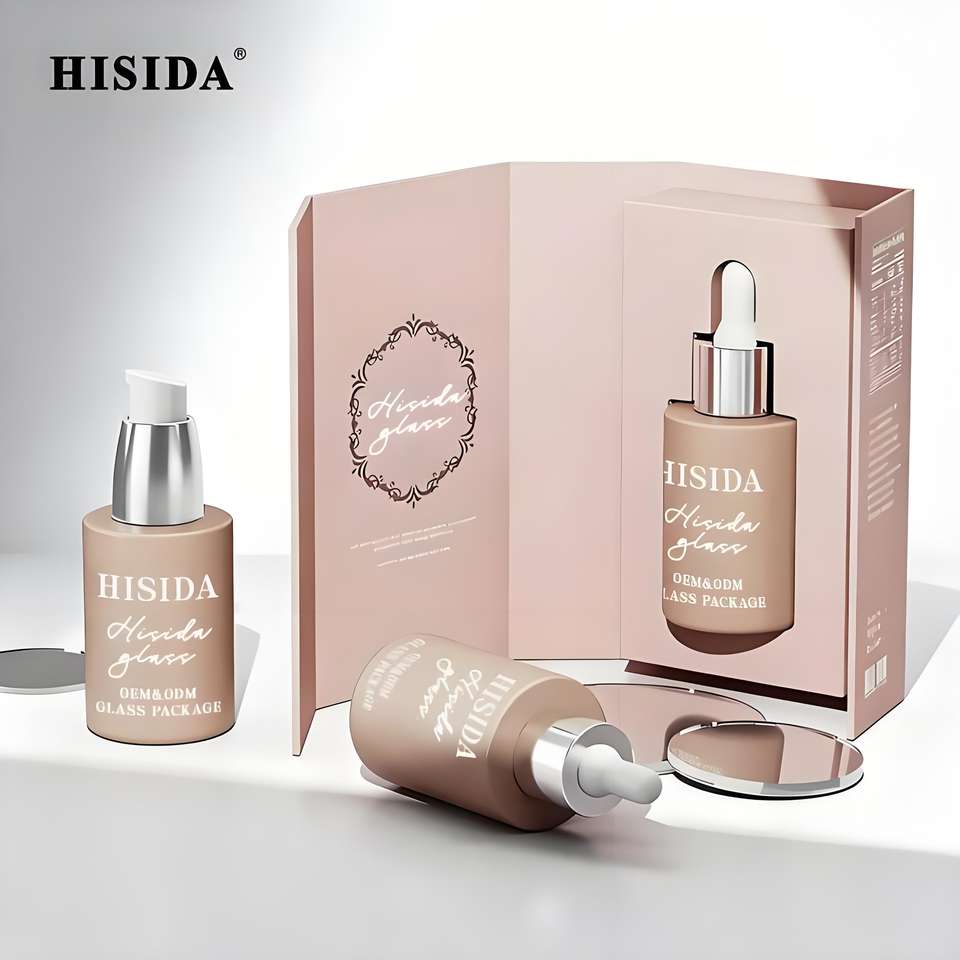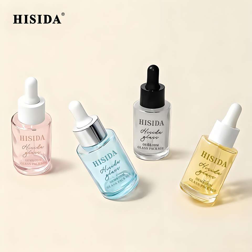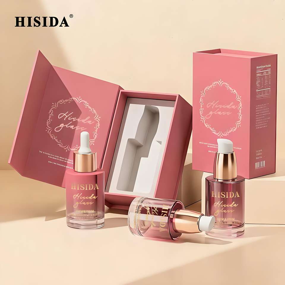 30 ml Hair Body Facial Oil Serum Bottle Flat Shoulder Essence Cylinder Glass Dropper Bottle With Packaging Gift Box
