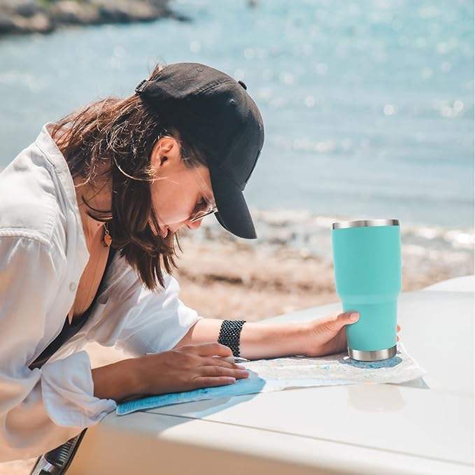 30 oz Stainless Steel Tumbler Travel Mug Straw Slider Lid Cleaning Brush Double Wall Vacuum Flask Bottle 6-12 Hours Drinkware