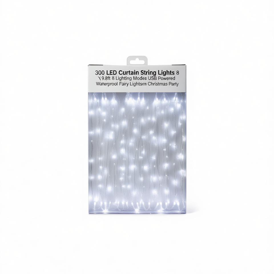 300 LED Curtain String Lights 9.8ft X 9.8ft USB Powered Waterproof Fairy Lights for Christmas Party