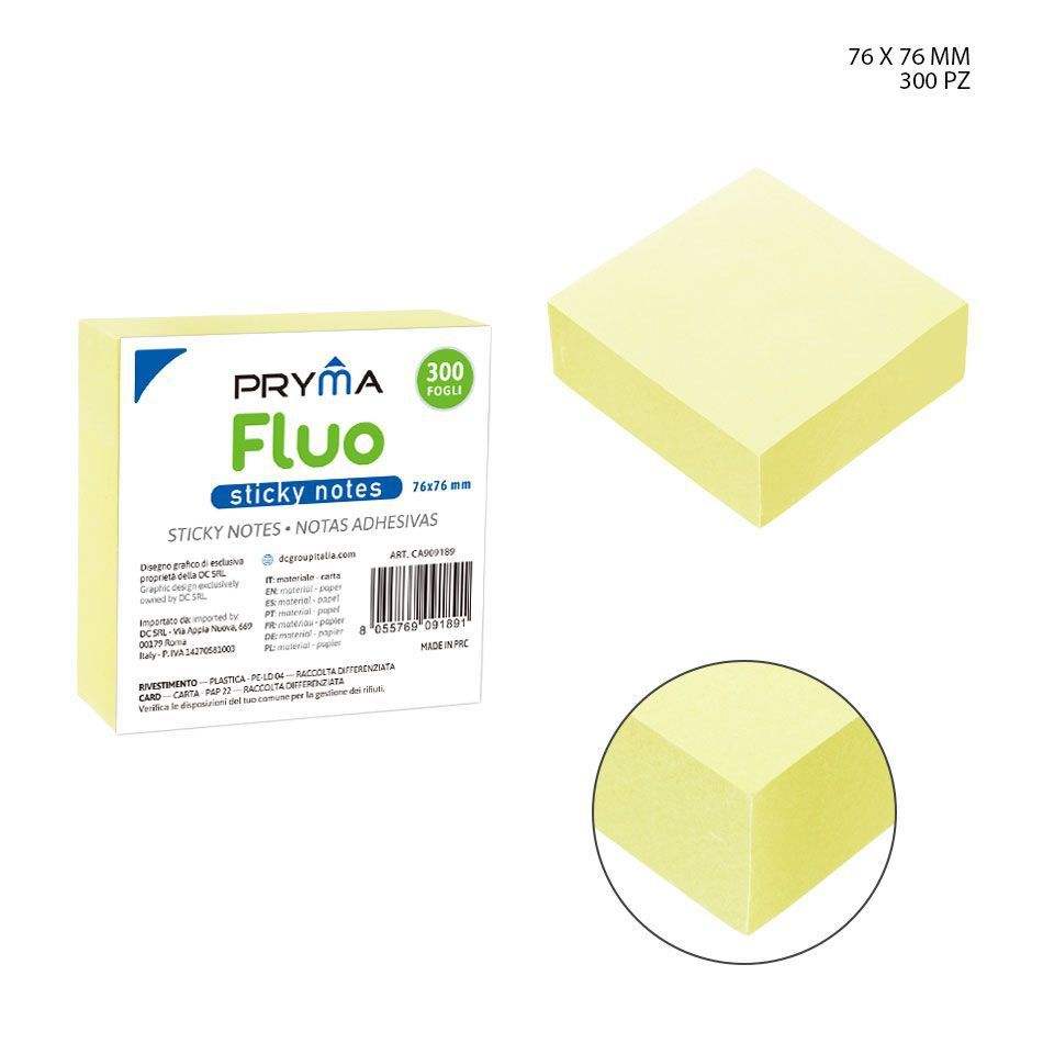 300-Pack 76x76mm Fluorescent Yellow Sticky Notes for Stationery & Organization Serving As Card & Note Holder