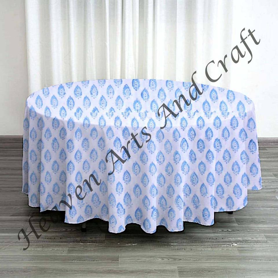 300X300 cm Cotton Round Custom Block Printed Party Wedding Tablecloth Table Cloths for Events Manufacturer Wholesale