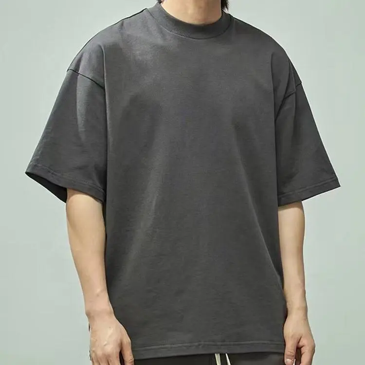300gsm Thick Cotton Oversized Heavyweight T Shirt Custom Logo Streetwear Men Mock Neck Tee Boxy Blank Printed TShirts for Men