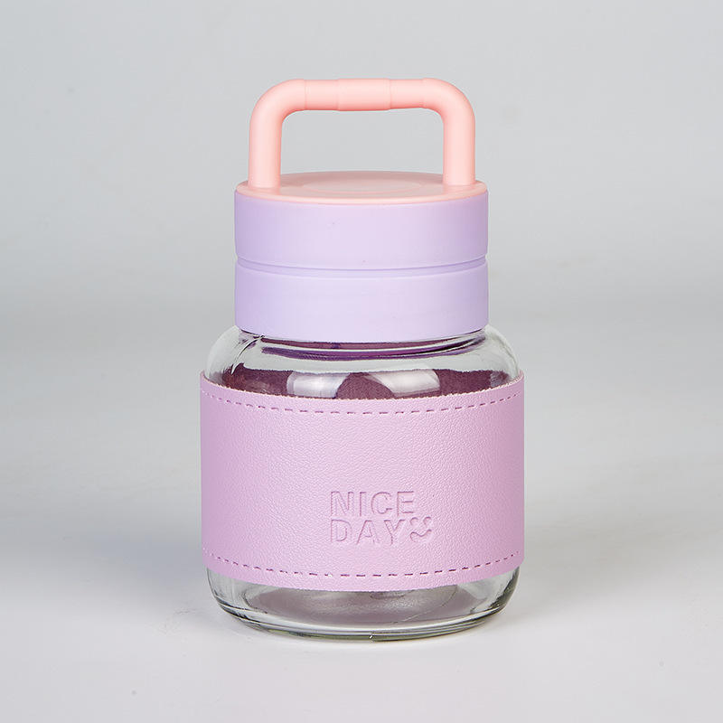 300ml High-Value Chubby Handle Glass Coffee Mug with PU Sleeve Reusable Food Safe Unisex Modern Design Travel Business Gift Use
