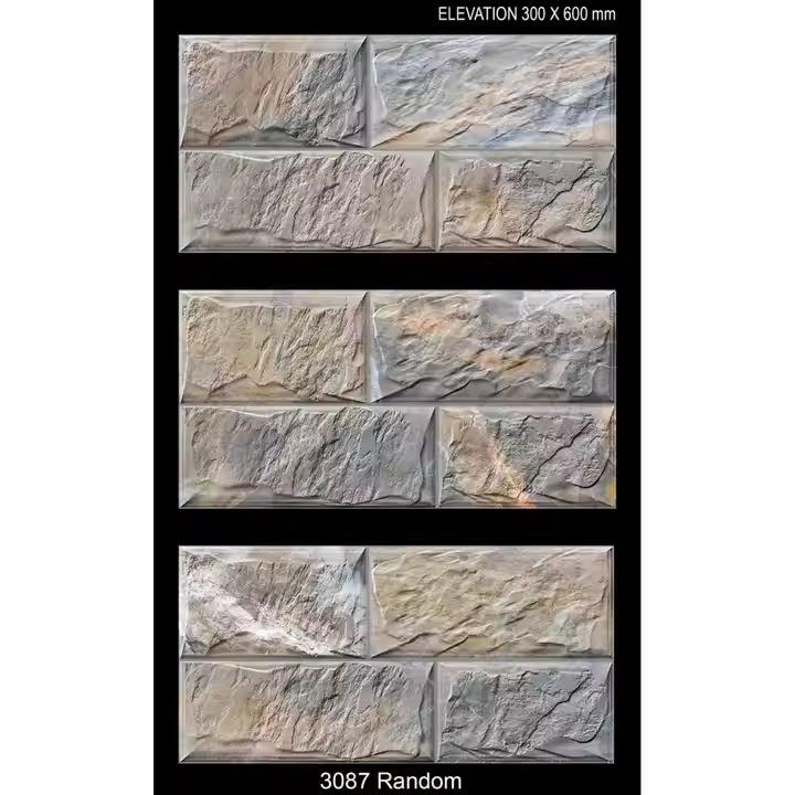 300x600mm 30x60cm 12x24 Brick Stone Elevation Look Ceramic Wall Tiles for House Exterior Decorative Walls Porcelain Patterns