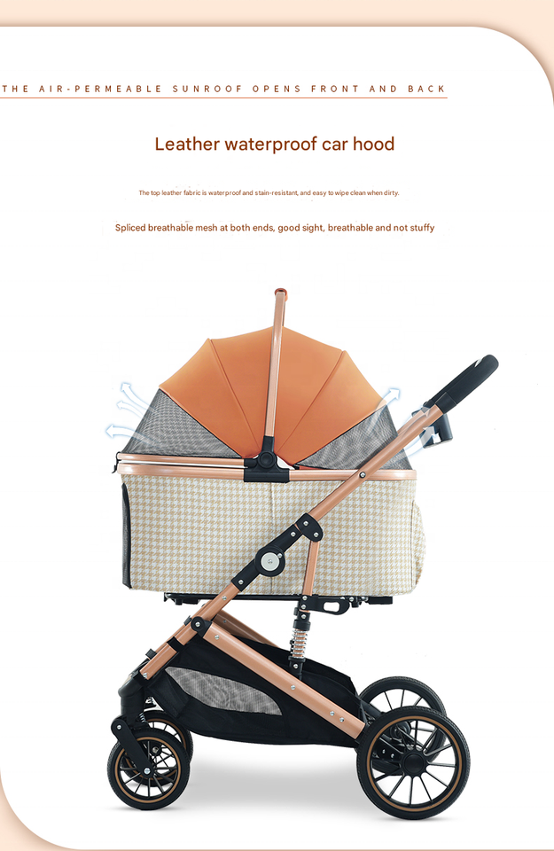 303 PU Later Luxury 4 Wheel Lager Capacity Twin Pet Stroller Detachable Carrier Dog Cat Carrier Outdoor Travel Trolley