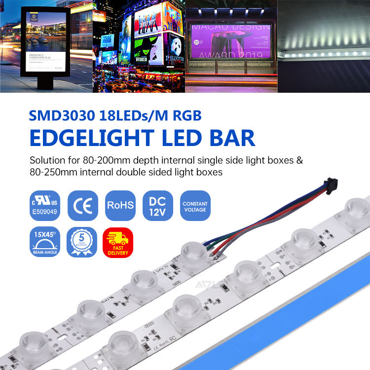 3030 RGB SMD LED Rigid Bar Light with Diffuse Optical Lens Aluminum Hard Strip Lamp for Fabric Lightbox Backlit